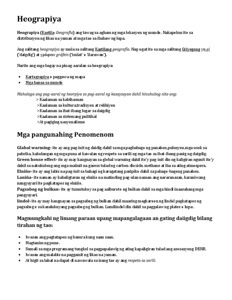 1 Minamalas ng marami ang Bibliya na lipas na sa panahon at di makatotohanan. Scribd es red social de lectura y publicacin ms importante del mundo. 2262013 Heograpiya-ang salitang heograpiya ay hango sa wikang Greeknageographia.