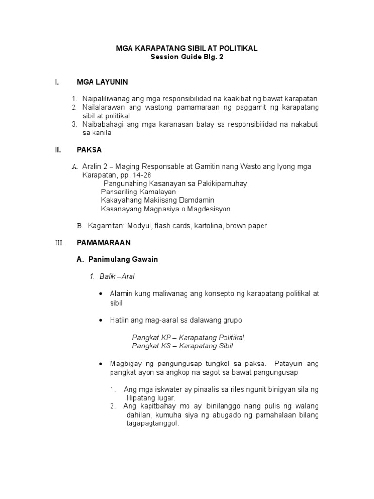 You can change your ad preferences anytime. 22062021 Ang mga karapatang sibil at pampolitika ay isang uri ng mga karapatan at mga kalayaan na nagsasanggalang o nabibigay ng proteksiyon sa mga indibiduwal mula sa hindi kinakailangang kilos ng pamahalaan at nagbibigay katiyakan o kaseguruhan sa kakayanan ng isang taong makiiisa sa buhay sibil at pampolitika ng estado na walang diskriminasyon o. Tinitiyak nila ang kakayahang makilahok sa sibil at pampulitikang buhay ng lipunan at estado nang walang diskriminasyon o panunupil.
